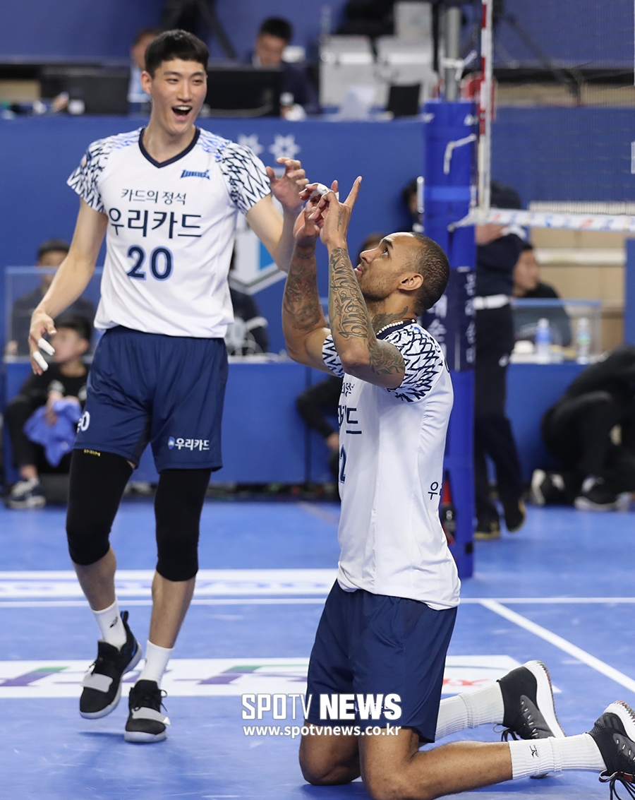 아가메즈가 없는 상황에서 우리카드는 KB손해보험과 OK저축은행을 상대로 각각 한 세트를 따냈다. 그러나 삼성화재와 경기에서는 무기력했다. 신 감독은 "플레이오프에서는 이런 배구를 하면 안 된다"며 목소리를 높였다.
