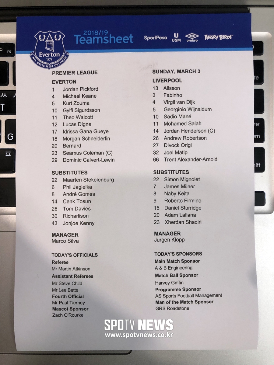 [스포티비뉴스=머지사이드(영국), 장우혁 통신원 / 박주성 기자] 리버풀과 에버턴이 선발명단을 발표했다.