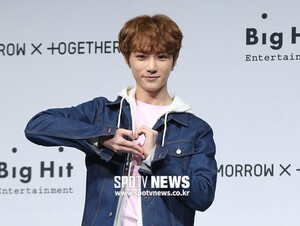 [스포티비뉴스=서울, 한희재 기자] 신인 아이돌 투모로우바이투게더(TXT) 데뷔 쇼케이스가 5일 오후 서울 광진구 광장동 예스24라이브홀에서 열렸다. 멤버 범규가 사진 촬영을 위해 포즈를 취하고 있다.