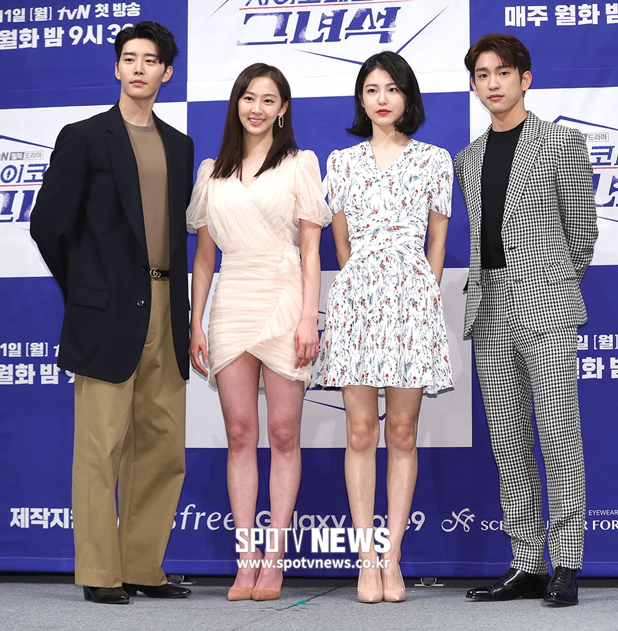 [스포티비뉴스=서울, 곽혜미 기자] tvN 새 월화극 ‘사이코메트리 그녀석’ 제작 발표회가 5일 오후 서울 강남구 논현동 임피리얼팰리스 호텔에서 열렸다. 배우 김권, 다솜, 신예은, 박진영(왼쪽부터)이 포즈를 취하고 있다.