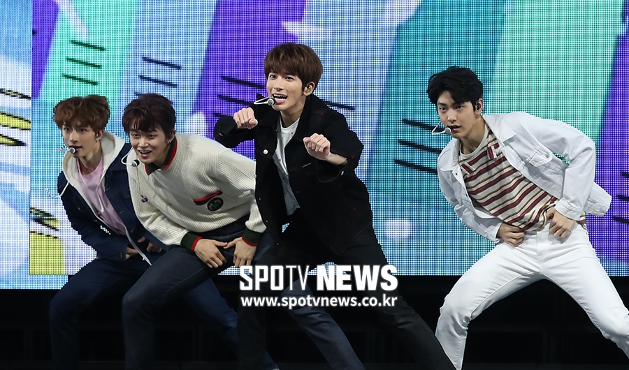 [스포티비뉴스=서울, 한희재 기자] 신인 아이돌 투모로우바이투게더(TXT) 데뷔 쇼케이스가 5일 오후 서울 광진구 광장동 예스24라이브홀에서 열렸다. 멤버 태현이 무대를 펼치고 있다.