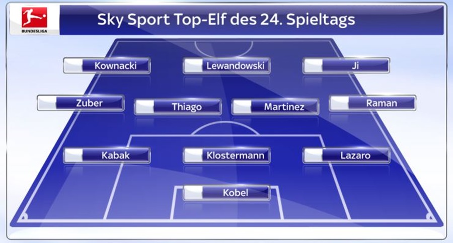지동원과 함께 로베르토 레반도프스키, 하비 마르티네스(이상 바이에른 뮌헨), 다비드 코브나키(뒤셀도르프)가 공격진에 선정됐다고, 미드필드는 티아고 알칸타라(바이에른 뮌헨), 베니토 라만(뒤셀도르프), 스티븐 주버(슈투트가르트), 수비는 발렌티노 라자로(헤르타BSC), 루카스 클로스터만(라이프치히), 오잔 카박(슈투트가르트)이 선정됐다. 골키퍼 부문은 지동원과 함께 도르트문트전 승리를 이끈 그레고르 코벨(아우크스부르크)가 뽑혔다.