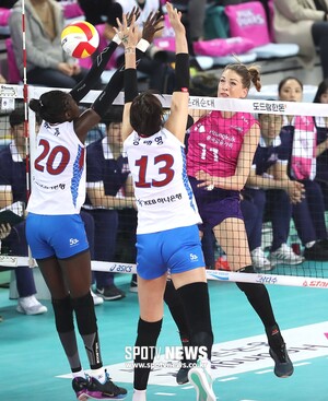 [스포티비뉴스=인천, 곽혜미 기자] 2018-2019 도드람 V리그 여자부 흥국생명과 한국도로공사의 경기가 6일 오후 인천 계양체육관에서 열렸다. 흥국생명 톰시아가 공격을 시도하고 있다.