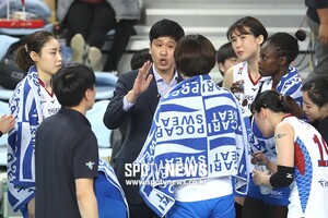 [스포티비뉴스=인천, 곽혜미 기자] 2018-2019 도드람 V리그 여자부 흥국생명과 한국도로공사의 경기가 6일 오후 인천 계양체육관에서 열렸다. 한국도로공사 김종민 감독이 작전 지시를 내리고 있다.