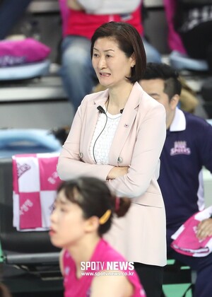 [스포티비뉴스=인천, 곽혜미 기자] 2018-2019 도드람 V리그 여자부 흥국생명과 한국도로공사의 경기가 6일 오후 인천 계양체육관에서 열렸다. 흥국생명 박미희 감독이 경기를 지켜보고 있다.