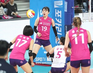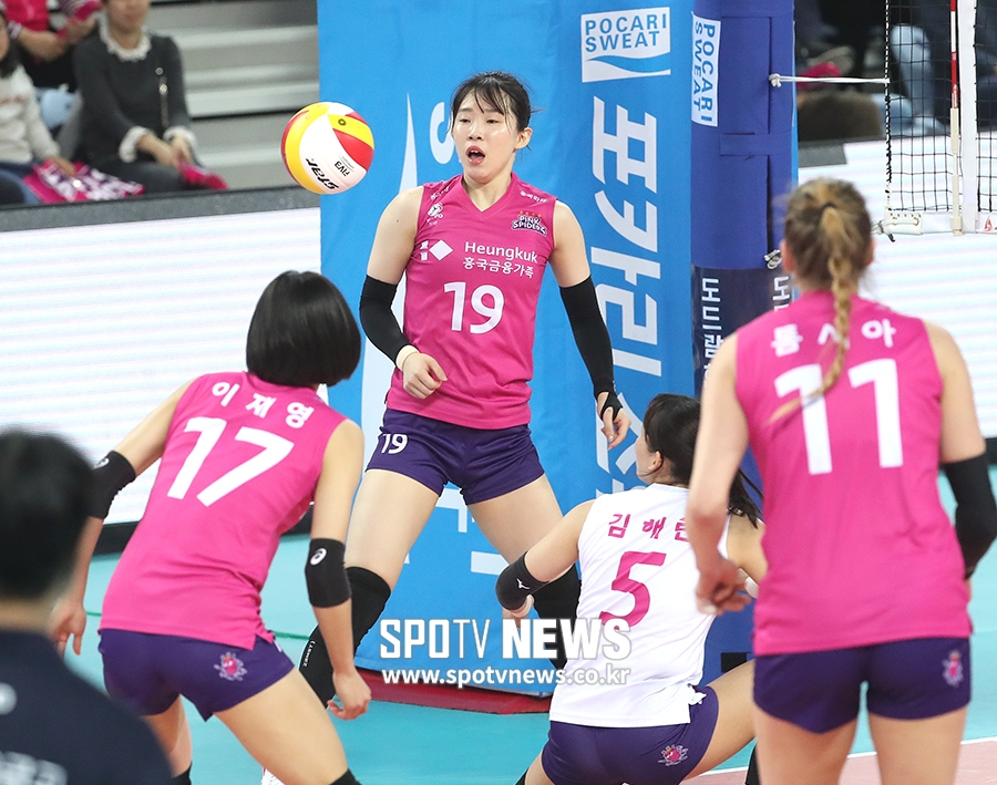 [스포티비뉴스=인천, 곽혜미 기자] 2018-2019 도드람 V리그 여자부 흥국생명과 한국도로공사의 경기가 6일 오후 인천 계양체육관에서 열렸다. 흥국생명 이재영과 김미연이 공을 바라보고 있다.