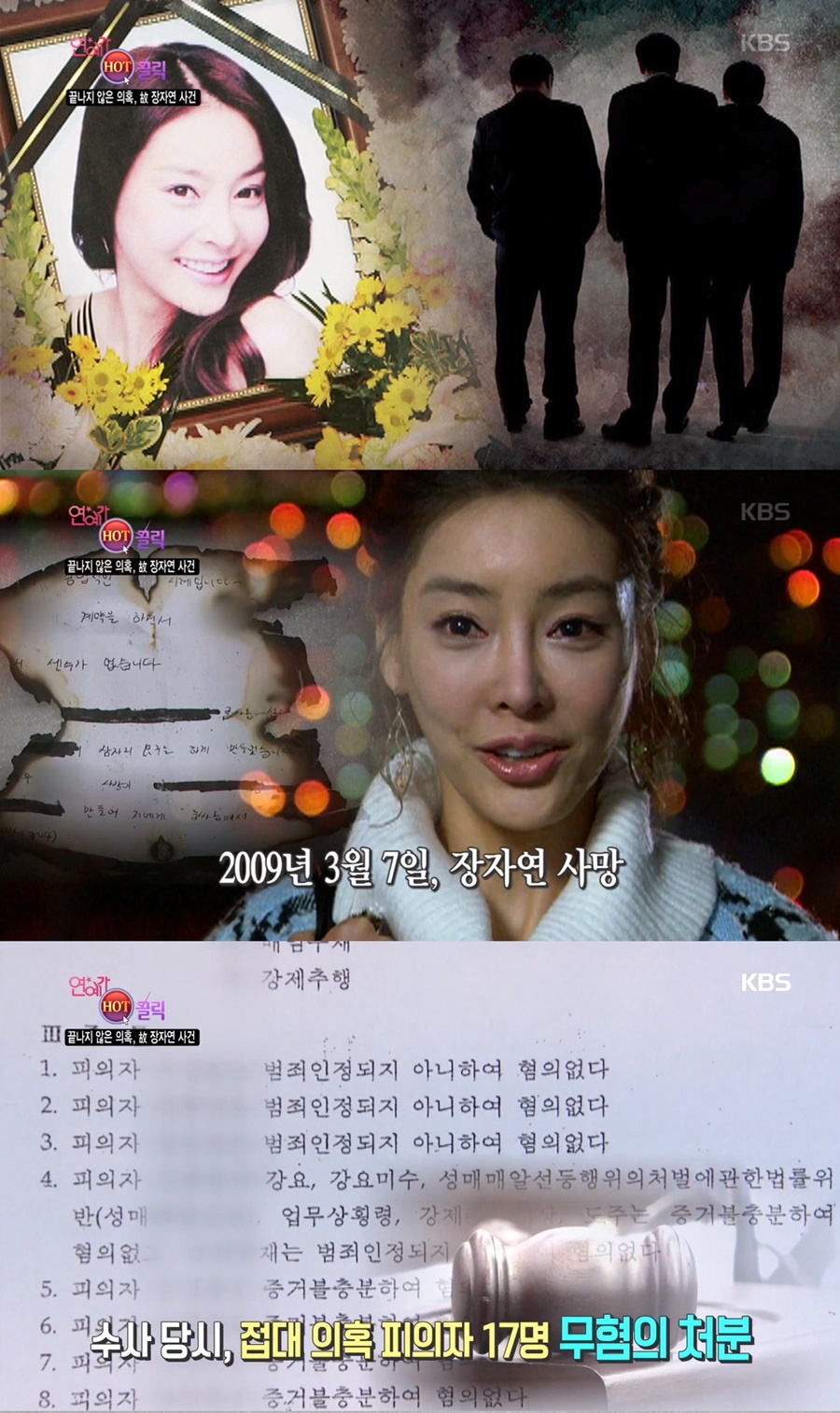故 장자연은 2009년 3월7일 경기도 성남시 분당구 자택에서 숨진 채 발견됐다. KBS2 '꽃보다 남자' 등에 출연하며 주목 받았기에 그의 사망은 큰 충격을 줬다.