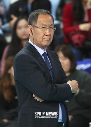 [스포티비뉴스=인천, 곽혜미 기자] 2018-2019 도드람 V리그 남자부 대한항공과 우리카드의 경기가 29일 오후 인천 계양체육관에서 열렸다. 대한항공 박기원 감독이 코트를 바라보고 있다.
