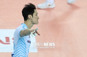 [스포티비뉴스=인천, 한희재 기자] 대한항공과 우리카드의 2018-2019 도드람 V리그 남자부 경기가 7일 오후 인천 계양체육관에서 열렸다. 득점을 올린 대한항공 진상헌이 기뻐하고 있다.
