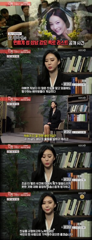 이에 리포터는 "우리가 알 만한 배우인가?"라고 물었고, 윤지오는 "맞다. 그 분도 마음 한 쪽이 무거울 거라 생각한다"라고 말했다.