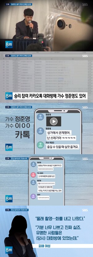 정준영은 11일 'SBS 8뉴스'의 성관계 영상 불법 촬영 및 유포 혐의 보도와 함께 논란에 휘말렸다. 보도에 따르면 정준영은 지난 2015년부터 여성들과 성관계한 영상을 몰래 촬영해 모바일 메신저 단체방에 공유했으며, 확인된 피해자만 10명에 이른다.