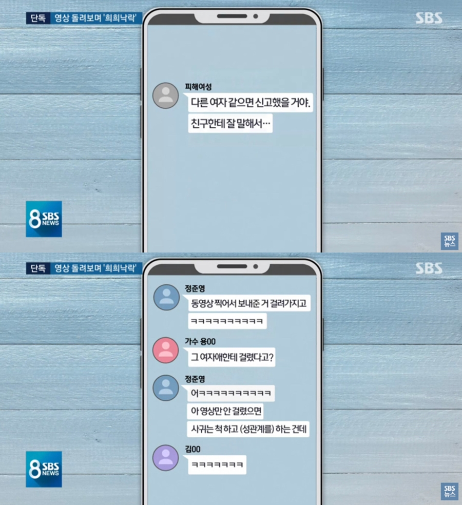 11일 'SBS 8뉴스' 보도에 따르면 정준영은 지난 2015년 친구들과의 단체 대화 방에서 한 여성과의 불법 성관계 영상을 공유했다. SBS는 2015년부터 10개월 분량의 대화를 확인한 결과 피해 여성이 10명에 이른다고 전했다.