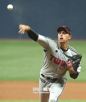 [스포티비뉴스=고척, 곽혜미 기자] 2019 KBO 리그 시범 경기 키움 히어로즈와 LG 트윈스의 경기가 12일 오후 서울 구로구 고척스카이돔에서 열렸다. LG 선발 윌슨이 역투하고 있다.