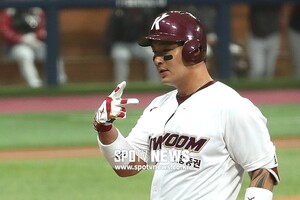 [스포티비뉴스=고척, 곽혜미 기자] 2019 KBO 리그 시범 경기 키움 히어로즈와 LG 트윈스의 경기가 12일 오후 서울 구로구 고척스카이돔에서 열렸다. 4회말 선두타자로 나선 넥센 박병호가 좌익수 앞 1루타를 치고 세리머니를 하고 있다.