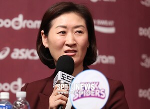 [스포티비뉴스=서울, 한희재 기자] 2018-2019 도드람 V리그 포스트시즌 미디어데이 행사가 12일 오후 서울 강남구 리베라호텔에서 열렸다. 흥국생명 박미희 감독이 도로공사와 GS칼텍스의 플레이오프 대결에 대한 이야기하고 있다.