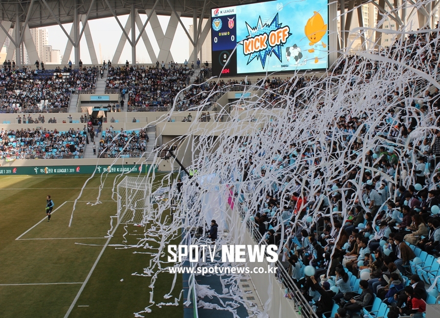 대구는 지난 9일 홈 경기에서 12172명의 관중을 모았다. 개장 첫 경기인 만큼 팬들의 뜨거운 관심 속에 '만원 관중'을 기록했다. 대구 역시 제주 유나이티드를 2-0으로 제압하면서 팬들의 응원에 보답했다.