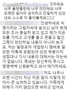 또한 그는 "'율팬'(유리 팬)들한테 너무 미안해요"라며 "너무 오래전 일이라 생각하고 안일하게 있었네요. 스스로 더 돌아볼게요"라고 유리의 이름을 언급하기도 했다.