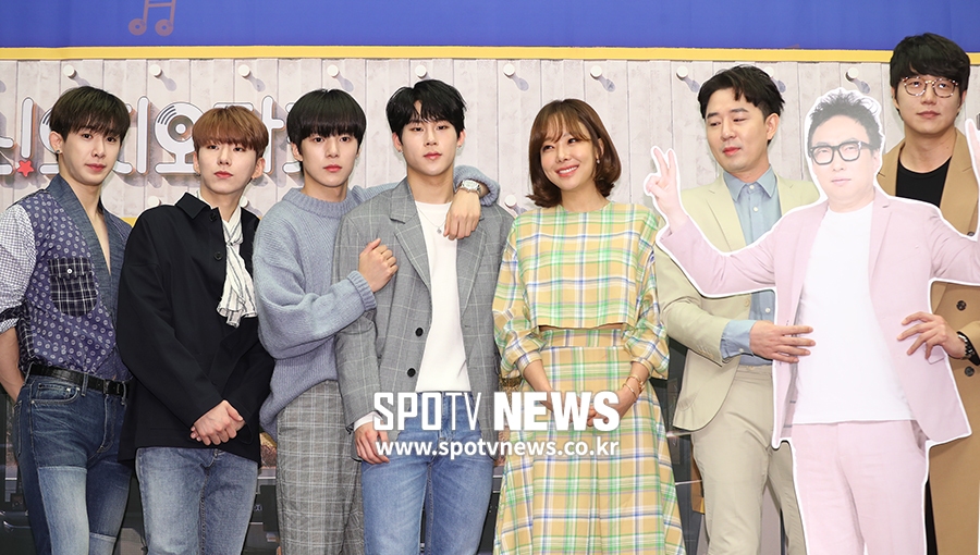 [스포티비뉴스=서울, 곽혜미 기자] tvN 새 예능 '쇼! 오디오자키' 제작 발표회가 13일 오전 서울 마포구 상암동 스탠포드호텔에서 열렸다. 몬스타엑스, 소유진, 붐, 성시경이 포즈를 취하고 있다.