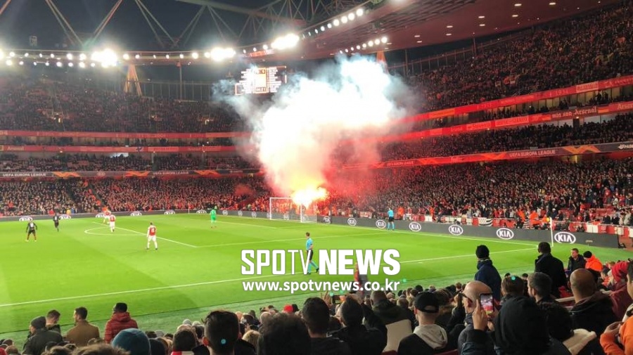 치열할 수밖에 없는 경기. 렌의 원정 팬들이 홍염을 터뜨렸다. 렌은 2골을 허용했지만, 전반 20분을 기점으로 거세게 몰아붙였다. 아스널 팬들은 주심의 판정이 야속했다. 아스널 선수들의 반칙에 휘슬을 불면 야유했다.