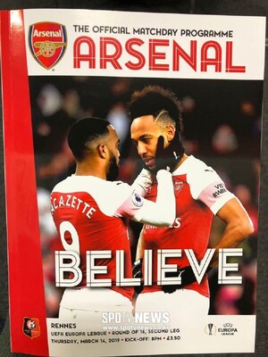 아스널은 15일 오전 5시(한국 시간) 영국 런던의 에미레이츠 스타디움에서 열린 2018-19시즌 유럽축구연맹(UEFA) 유로파리그 16강 2차전 스타드 렌과 경기에서 3-0으로 이겼다. 1, 2차전 합계 4-3으로 아스널이 8강에 올랐다.