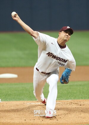 [스포티비뉴스=고척, 곽혜미 기자] 2019 KBO 리그 시범 경기 키움 히어로즈와 롯데 자이언츠의 경기가 15일 오후 서울 구로구 고척스카이돔에서 열렸다. 키움 선발 김동준이 역투하고 있다.