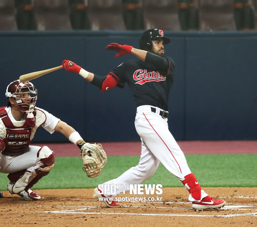 [스포티비뉴스=고척, 곽혜미 기자] 2019 KBO 리그 시범 경기 키움 히어로즈와 롯데 자이언츠의 경기가 15일 오후 서울 구로구 고척스카이돔에서 열렸다. 2회초 선두타자로 나선 롯데 아수아헤가 스윙을 하고 있다. 아쉽게 플라이 아웃.