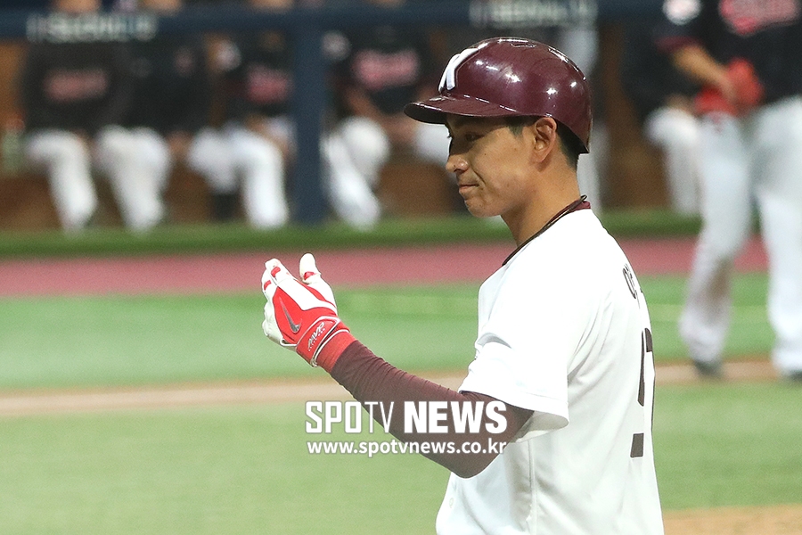 [스포티비뉴스=고척, 곽혜미 기자] 2019 KBO 리그 시범 경기 키움 히어로즈와 롯데 자이언츠의 경기가 15일 오후 서울 구로구 고척스카이돔에서 열렸다. 3회말 무사 1루 상황에서 키움 이정후가 안타를 기뻐하고 있다.