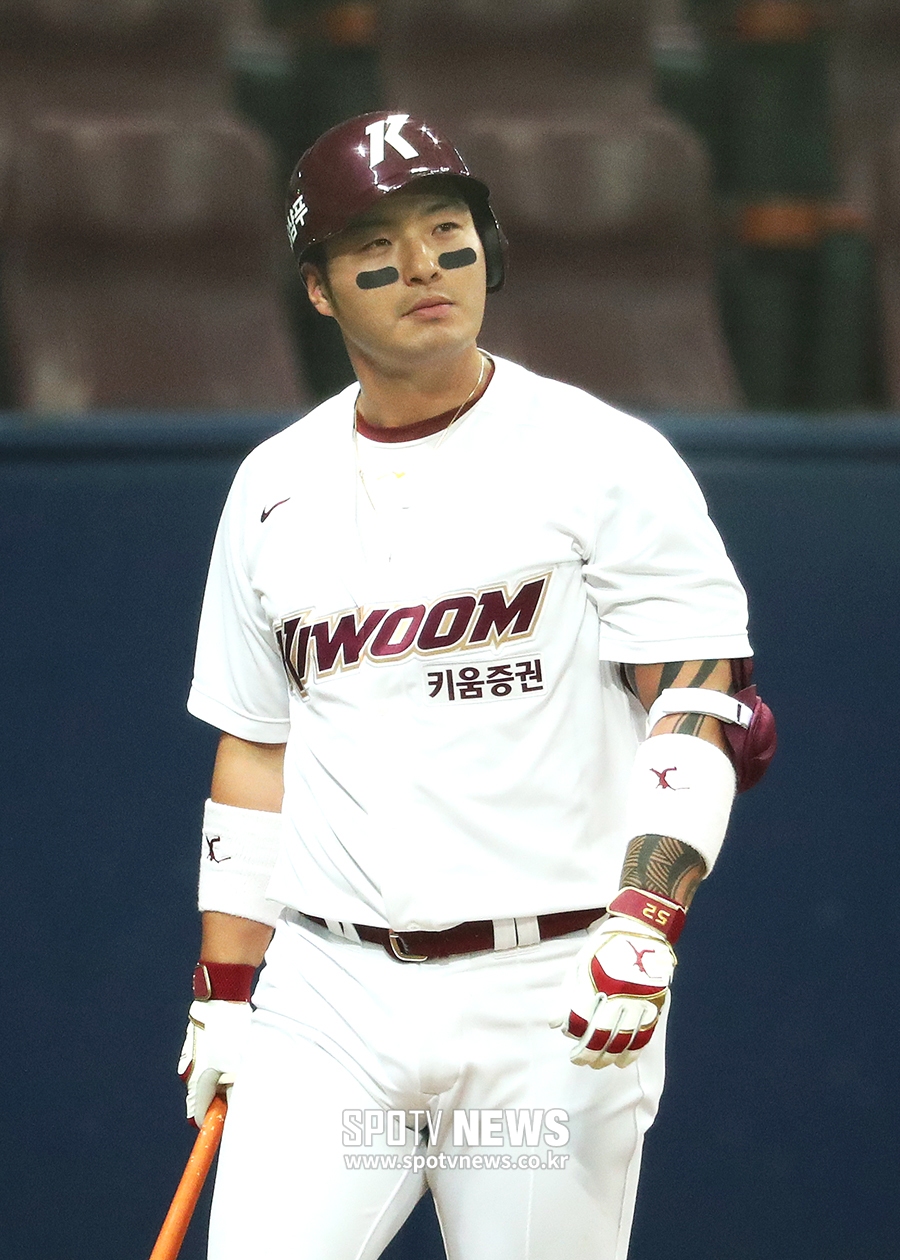 [스포티비뉴스=고척, 곽혜미 기자] 2019 KBO 리그 시범 경기 키움 히어로즈와 롯데 자이언츠의 경기가 15일 오후 서울 구로구 고척스카이돔에서 열렸다. 3회말 1사 1,3루 상황에서 키움 박병호가 삼진을 당한 후 아쉬워하고 있다.