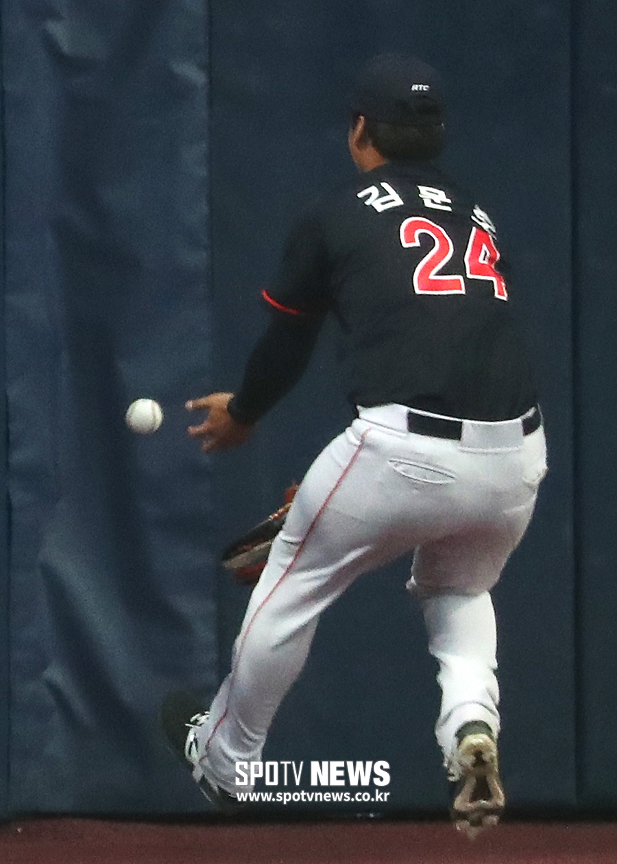 [스포티비뉴스=고척, 곽혜미 기자] 2019 KBO 리그 시범 경기 키움 히어로즈와 롯데 자이언츠의 경기가 15일 오후 서울 구로구 고척스카이돔에서 열렸다. 5회말 키움 김혜성이 타구를 롯데 좌익수 김문호가 놓치고 있다.
