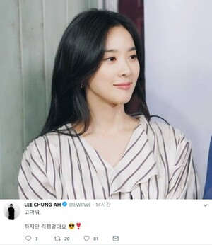 이청아도 12일 오후 자신의 트위터에 직접 "고마워. 하지만 걱정 말아요"라는 글을 남겨 팬들의 염려에 직접 답하기도 했다.