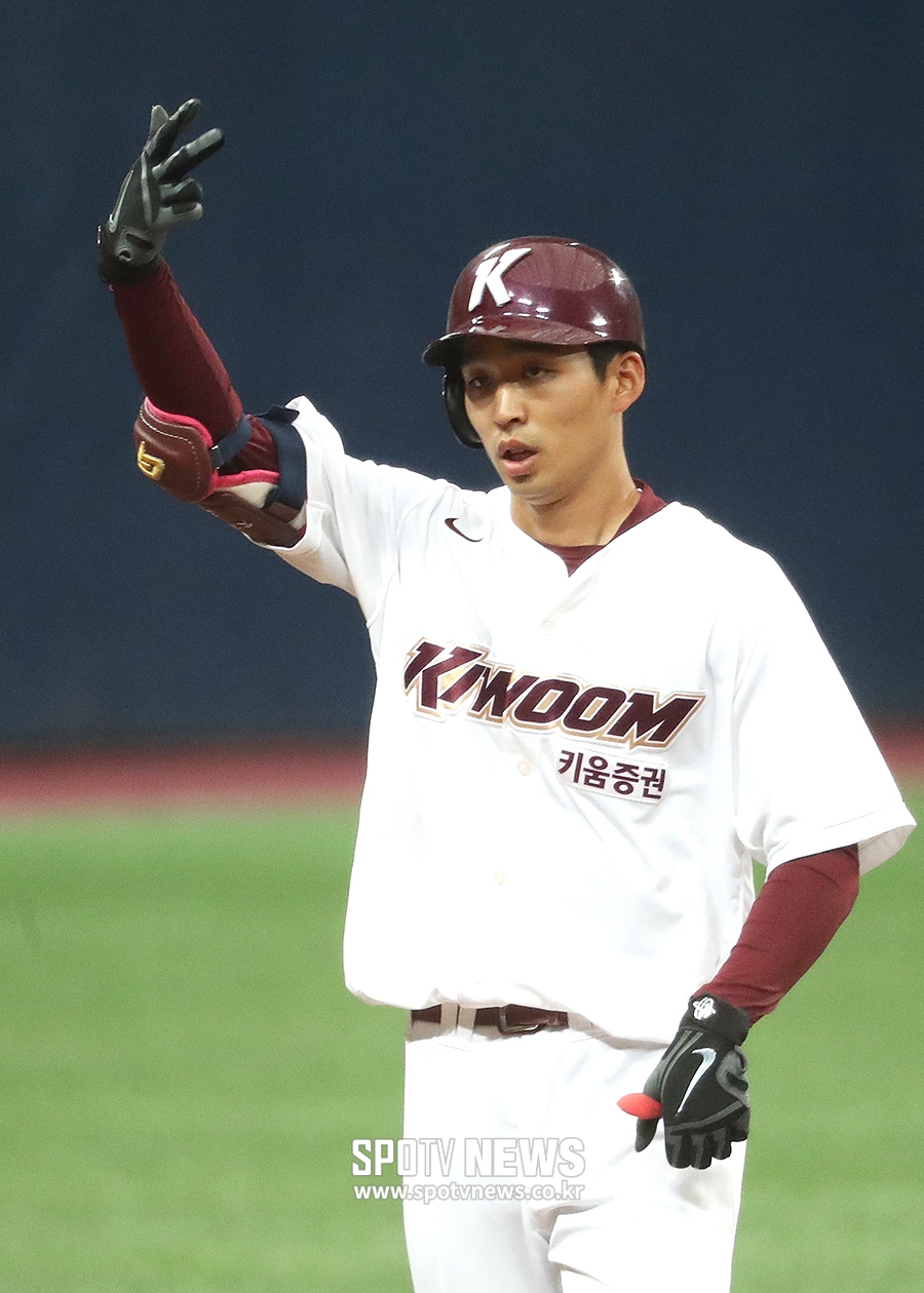 [스포티비뉴스=고척, 곽혜미 기자] 2019 KBO 리그 시범 경기 키움 히어로즈와 롯데 자이언츠의 경기가 15일 오후 서울 구로구 고척스카이돔에서 열렸다. 5회말 무사 2루 상황에서 키움 김규민이 1타점 적시타를 날리고 세리머니를 하고 있다.