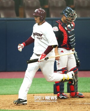 [스포티비뉴스=고척, 곽혜미 기자] 2019 KBO 리그 시범 경기 키움 히어로즈와 롯데 자이언츠의 경기가 15일 오후 서울 구로구 고척스카이돔에서 열렸다. 7회말 선두타자로 나선 키움 김수환이 역전 솔로포를 날린 후 더그아웃으로 향하고 있다.