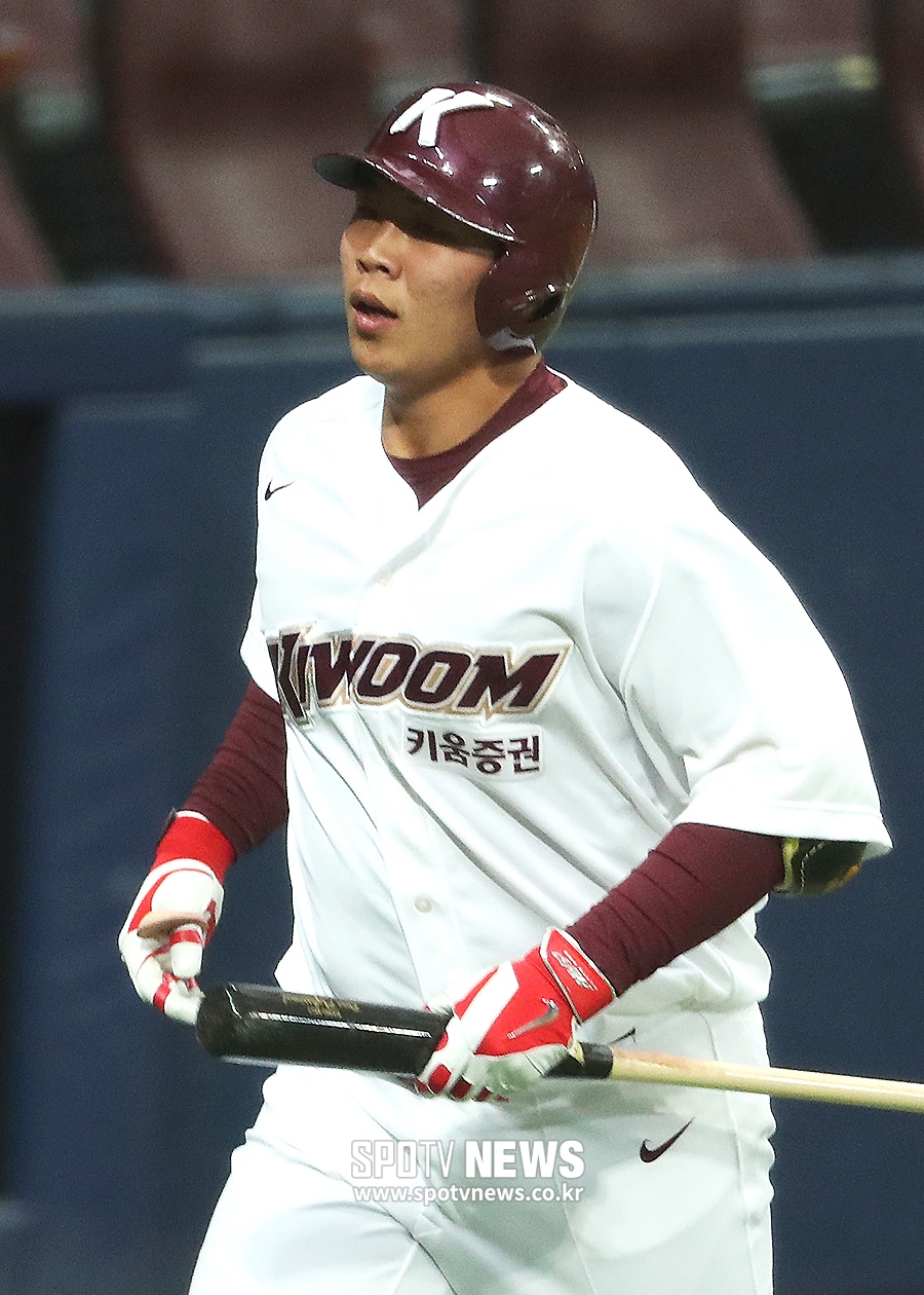 [스포티비뉴스=고척, 곽혜미 기자] 2019 KBO 리그 시범 경기 키움 히어로즈와 롯데 자이언츠의 경기가 15일 오후 서울 구로구 고척스카이돔에서 열렸다. 7회말 선두타자로 나선 키움 김수환이 역전 솔로포를 날린 후 더그아웃으로 향하고 있다.