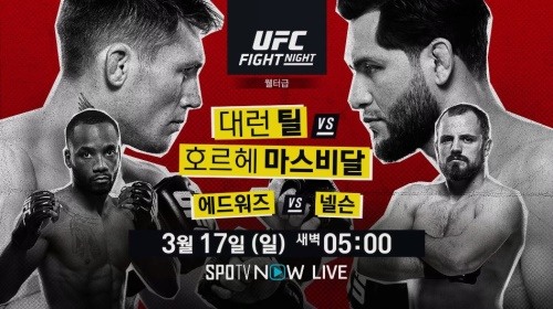 최근 두 경기에서 연달아 판정패하며 침체에 빠졌던 마스비달이 오랜만에 돌아온 옥타곤에서 연패 고리를 끊어낼 수 있을지 관심거리다. 3위 틸을 잡으면 톱5로 단숨에 도약할 수 있기에 더욱 승리가 간절하다.