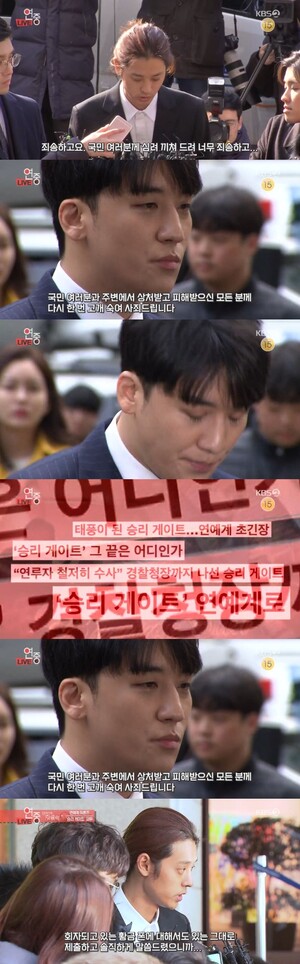 15일 방송된 KBS 2TV 연예정보프로그램 '연예가 중계'에서는 연예계를 뒤흔든 '승리 게이트'에 대해 조명했다.