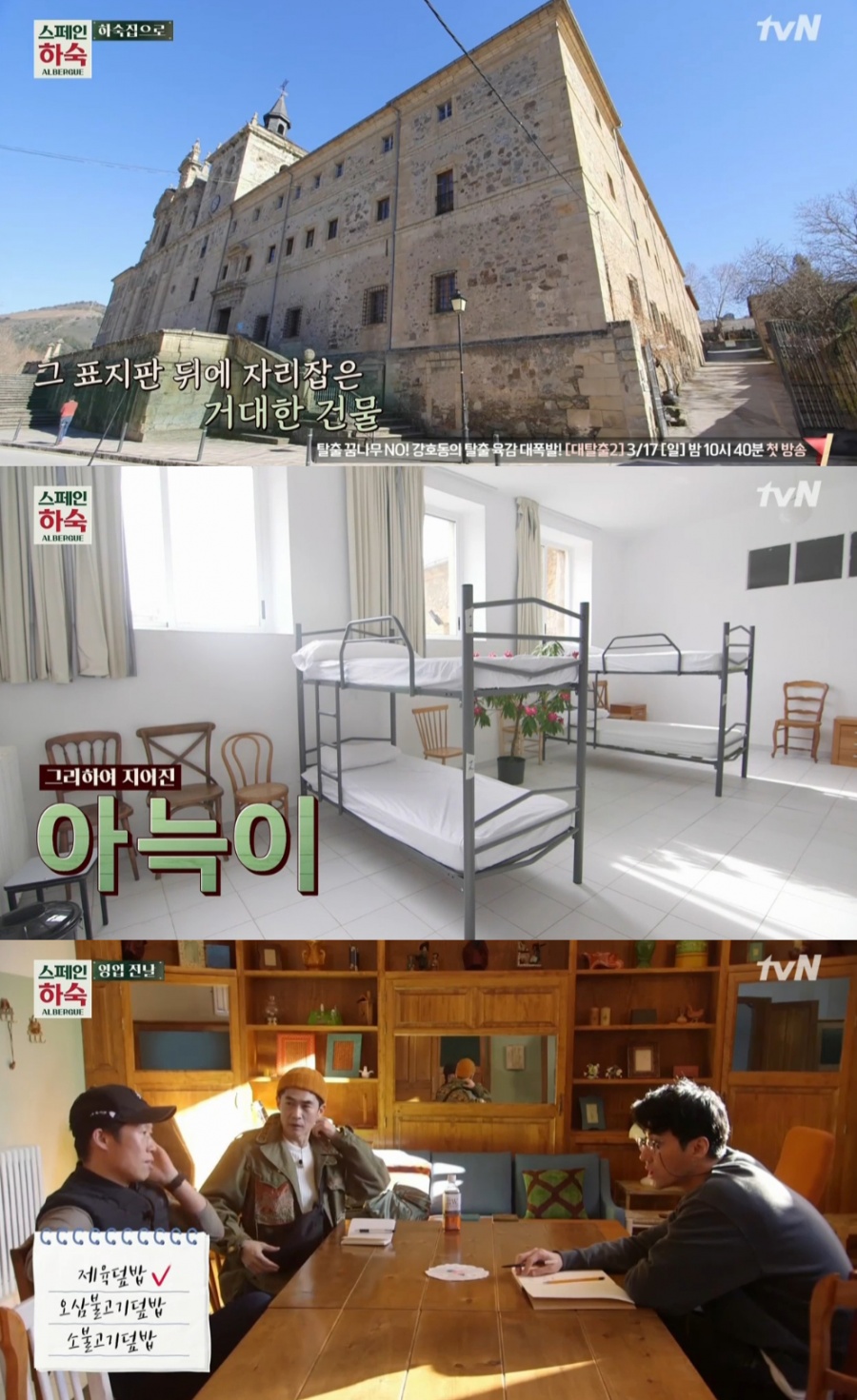 순례길 위에 위치한 '비야프랑카 델 비에르소'에 하숙집을 열게 된 차승원·배정남·유해진은 표지판을 따라 걷다 마주한 거대한 건물에 당황했다.