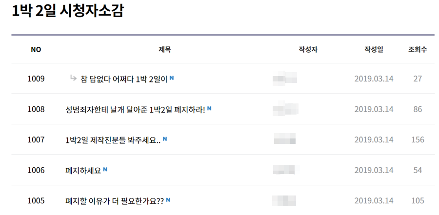 이렇게 '성범죄자를 복귀시킨 꼴'이 된 공영방송에 시청자들의 분노는 거세지고 있다. '1박2일 시청자 게시판에는 프로그램 폐지를 요구하는 글들이 쏟아지고 있으며 청와대 국민 청원에도 올라갔다.