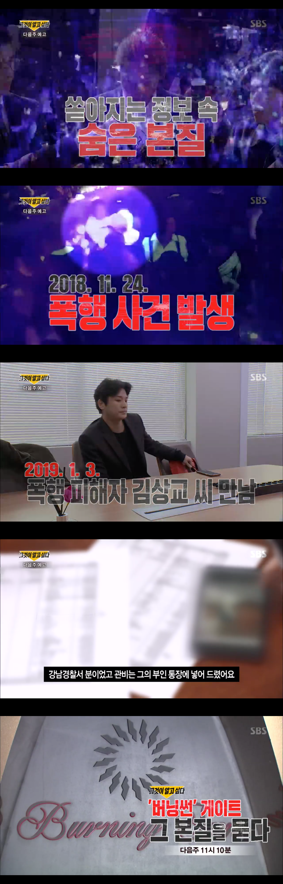 지난 16일 방송된 SBS '그것이 알고싶다' 말미에는 다음 방송분에 대한 예고 영상을 내보냈다. 이는 지난 2018년 11월 24일 발생한 폭행사건을 시작으로 한다.