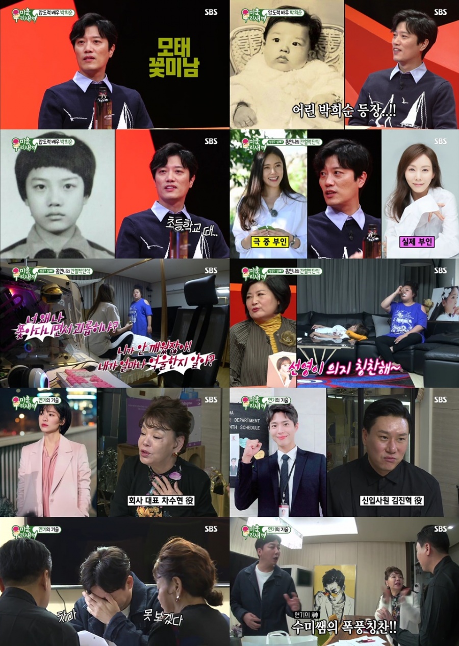 이날 배우 박희순이 지난 주에 이어 스페셜 MC로 출연해 어머님들의 사랑을 한 몸에 받았다. 트히 어릴 적 잘 생긴 외모를 담은 사진이 공개돼 눈길을 끌었다.