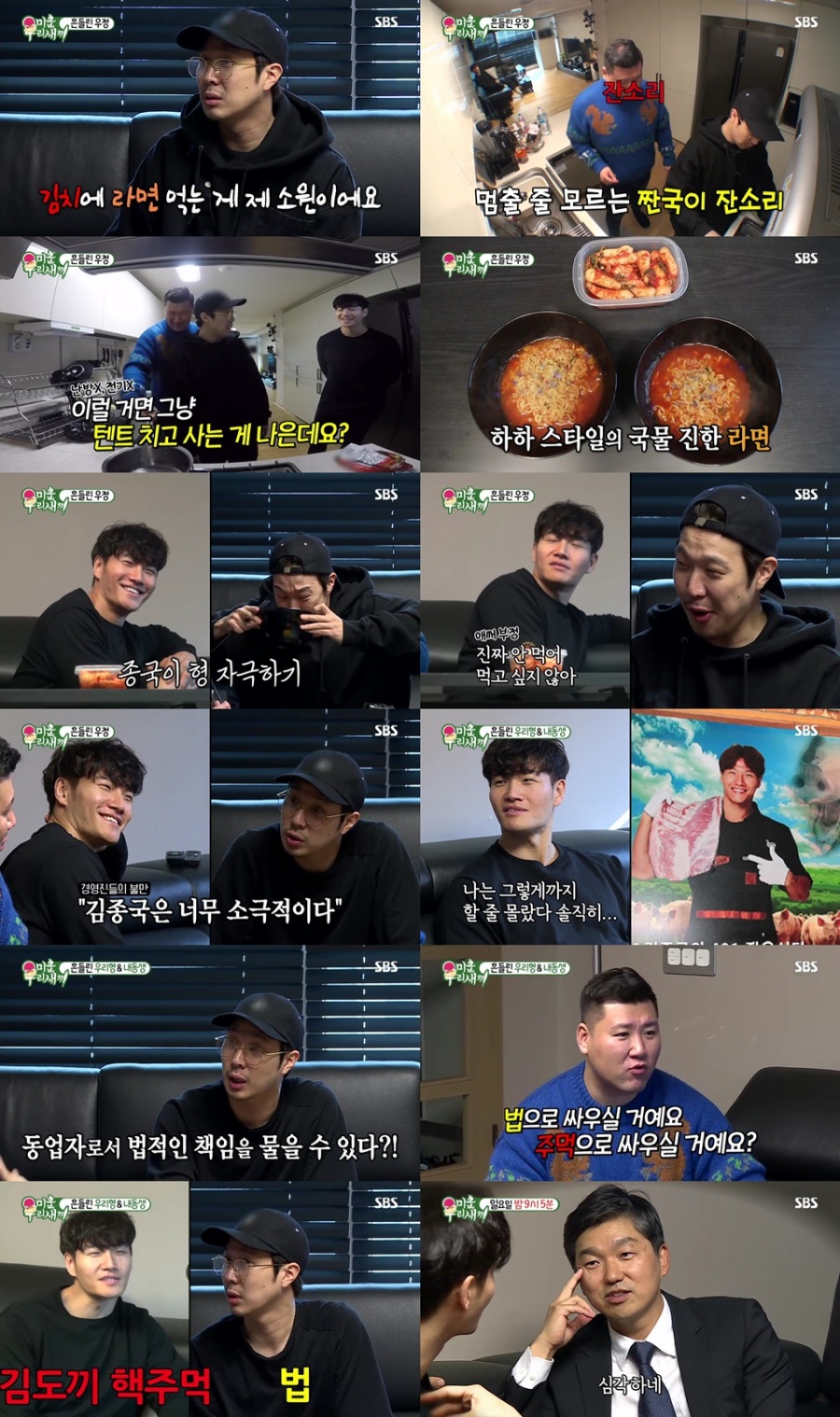 하하는 동업자인 김종국의 소극적 태도에 불만을 털어놓았다. 김종국은 고기를 들쳐업고 광고 사진을 찍은 것을 떠올리며 "나는 그렇게까지 하는 줄 몰랐다"며 부끄러워하는 내색을 내비쳤다. 그의 소극적 태도에 하하가 "동업자로서 법적인 책임을 물을 수 있다"고 주장했고, 매니저 갑진은 "법으로 싸우실 거예요? 주먹으로 싸우실 거예요"라고 물었다. 두 사람의 갈등이 본격화되자 김종국은 변호사를 집으로 모셔 시시비비를 가리겠다고 해 긴장감을 고조시켰다. 이에 이들의 분쟁이 어떤 결말을 가져올지 궁금증을 자아냈다.