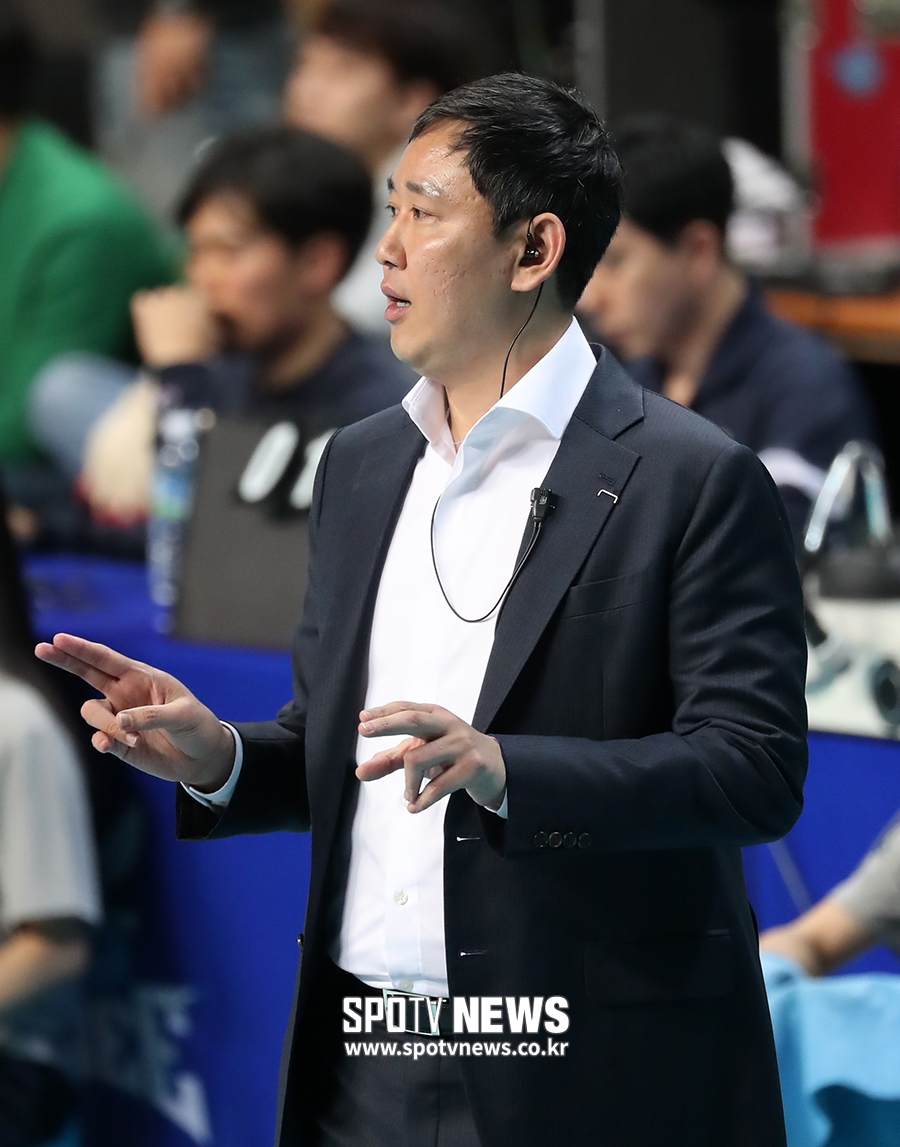 [스포티비뉴스=서울, 한희재 기자] 우리카드와 현대캐피탈의 2018-2019 도드람 V리그 플레이오프 2차전이 18일 오후 서울 중구 장충체육관에서 열렸다. 현대캐피탈 최태웅 감독이 작전을 지시하고 있다.