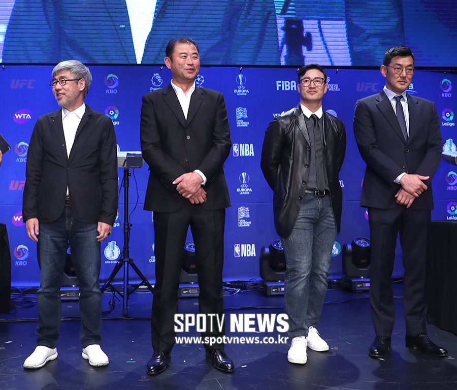 [스포티비뉴스=서울, 곽혜미 기자] 2019 스포티비 커넥트 데이 행사가 19일 오후 서울 강남구 넥슨 아레나에서 열렸다. SPOTV 민훈기, 김경기, 김재현, 서용빈(왼쪽부터) 해설위원이 인사말을 하고 있다.