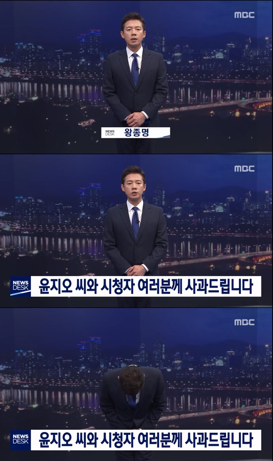 [스포티비뉴스=장우영 기자] 배우 윤지오에게 '장자연 리스트' 속 인물의 실명을 공개해 달라고 압박해 논란에 휩싸인 MBC 왕종명 앵커가 다시 한번 사과했다.