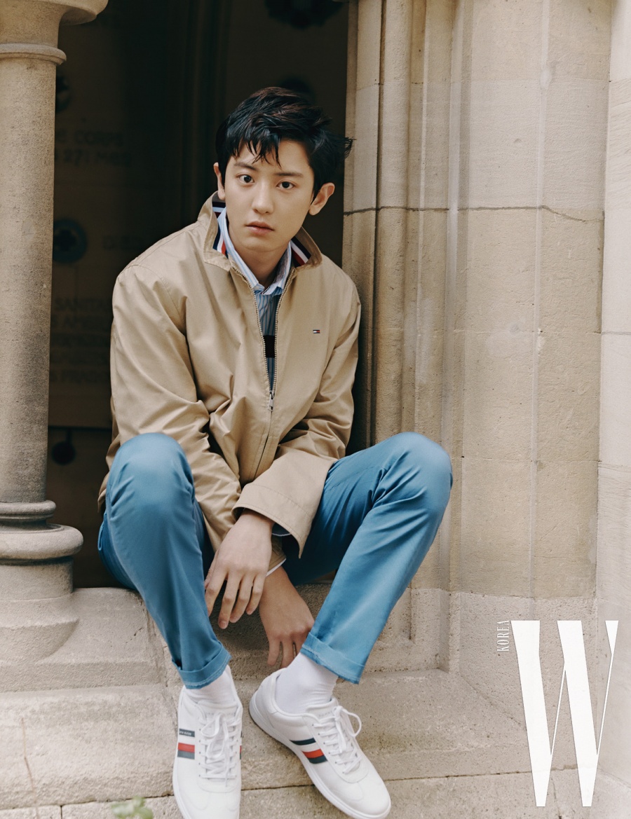 화보 속 찬열은 베이지색 짚업 자켓과 블루 팬츠를 매치하여 댄디한 캐주얼 룩을 완벽 소화하는가 하면 또 다른 화보에서는 소매에 스트라이프 포인트가 가미된 피케 셔츠와 화이트 팬츠를 착용하여 베이직한 봄-여름 스타일링을 제안했다.