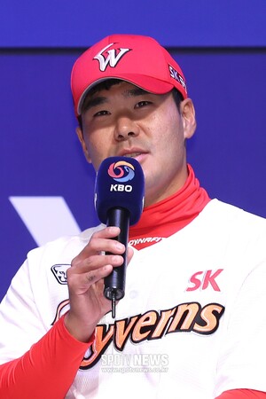 [스포티비뉴스=서울, 곽혜미 기자] 2019 신한은행 MY CAR KBO 미디어 데이&팬페스트 행사가 21일 오후 서울 강남구 삼성동 코엑스 오디토리움에서 열렸다. SK 이재원이 인사말을 하고 있다.
