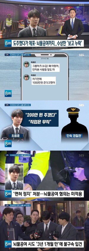 [스포티비뉴스=장우영 기자] 3년 전 음주운전 적발을 무마하기 위해 경찰과 유착한 의혹을 받고 있는 가수 최종훈이 뇌물을 주려 했고, 음주운전 적발 당시 도주를 시도하고 거짓말을 한 정황이 포착됐다. 경찰은 3년 1개월 만에 최종훈을 뇌물 공여 혐의로 입건했다.