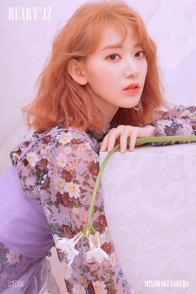 아이즈원은 22일 공식 SNS에 김채원, 이채연, 미야와키 사쿠라의 두 번째 미니앨범 '하트아이즈(HEART*IZ)' 비올레타 버전 개인 오피셜 포토를 업로드했다.