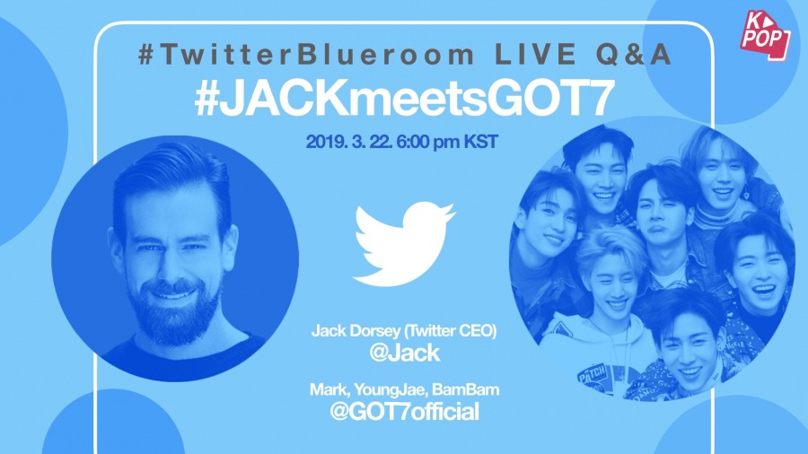 갓세븐 멤버 마크, 영재, 뱀뱀은 서울 역삼동 트위터 코리아에서 진행되는 트위터 방송 콘텐츠 '블루룸 라이브'에서 잭 도시와 함께 ‘트위터를 통한 팬들과 소통’에 대한 주제로 대담을 나눌 예정이다.