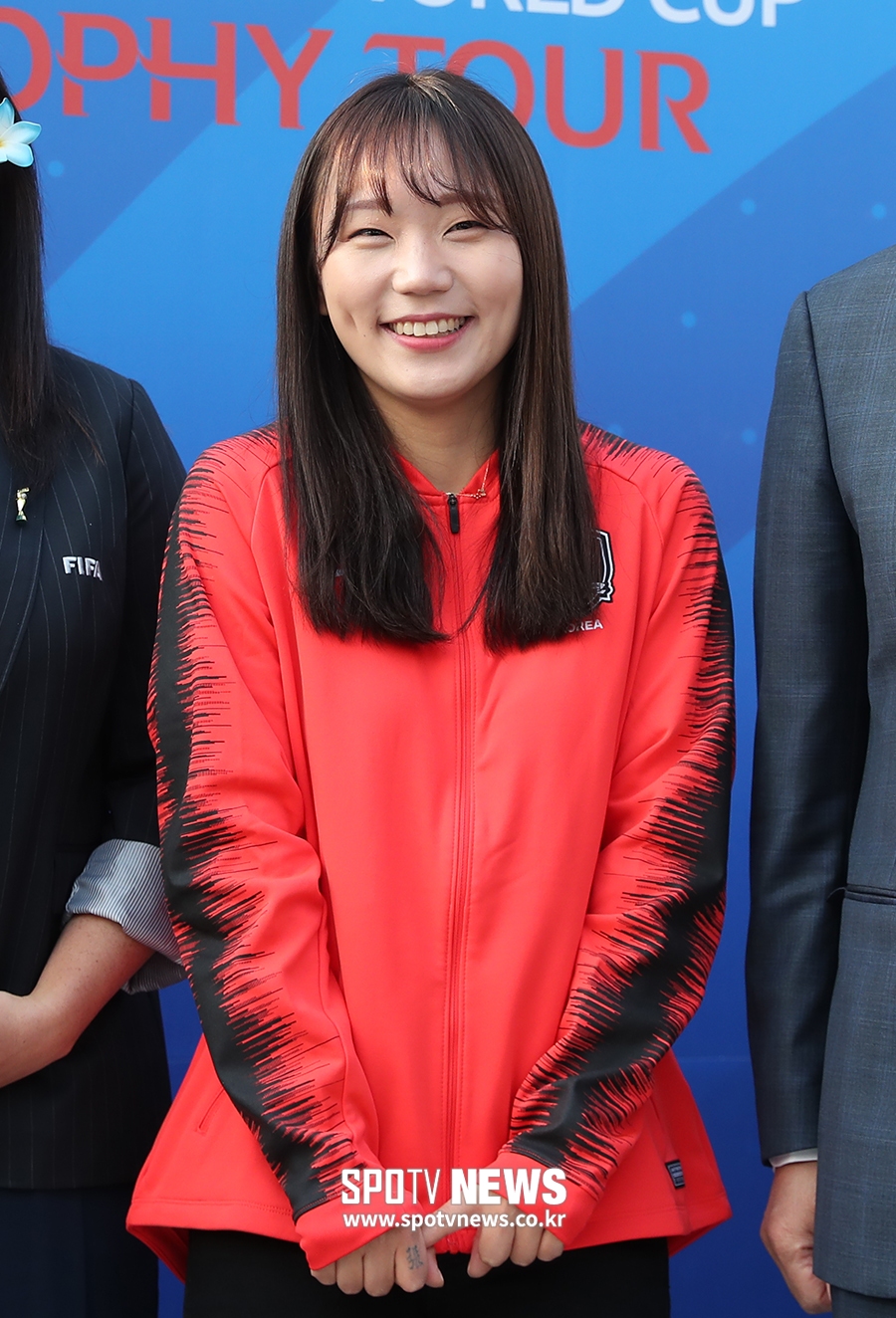 [스포티비뉴스=울산, 한희재 기자] 대한민국 축구대표팀과 볼리비아 대표팀의 평가전이 22일 오후 울산문수축구경기장에서 열린다. 경기 전 2019 FIFA 프랑스 여자월드컵 트로피 투어 행사에서 참여한 VIP들이 기념촬영을 하고 있다.