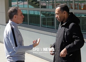 이 훈련장에 깜짝 손님이 등장했다. 바로 조세 모라이스 전북현대 감독이다. 같은 포르투갈 축구인인 두 사람은 반갑게 만나 약 30분 동안 이야기를 나눴다. 두 감독은 주위 시선을 신경 쓰지 않고 계속해서 이야기를 이어갔다. 두 사람의 표정은 다양했다.